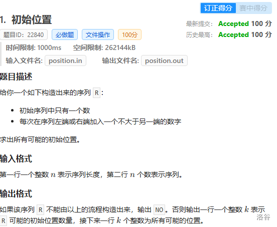题意:指定一个空序列,在里面放入一个数字,能否通过每次在左右两端通过添加一个小于等于另一端的数字,形成一个数列 R。