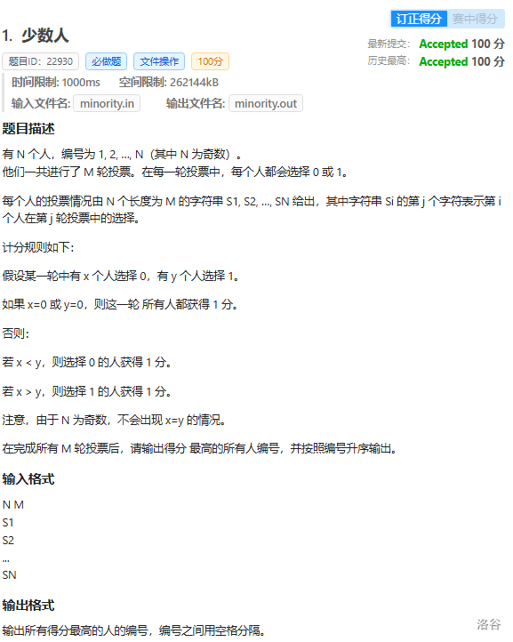 今天考试一开考,就首先打开了T1。看了几眼体面,就发现了可以直接统计每一轮的投 0 的票的人数和投 1 的人数,统计一下架上即可。