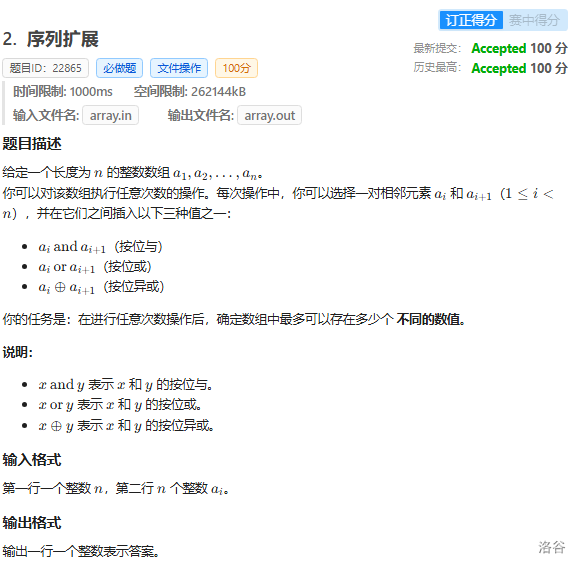 这次想到了用之前有一次洛谷比赛用过的线性基,但是似乎因为不是很熟,就导致后来调代码调了好久,后来和T1一样,样例都条对了,但是也是保龄了。